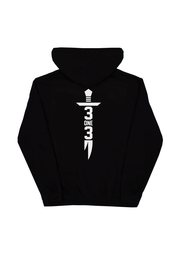 This hoodie features a small crest on the left chest pocket and our large 3ONE3 Zulfiqar on the back in matching colours.